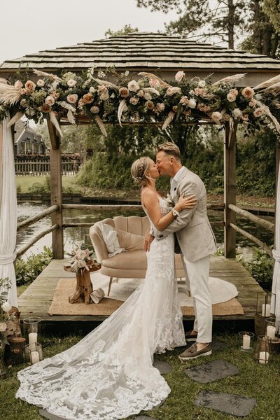 Ja! Bij mooi weer kunnen jullie trouwen op een idyllisch eilandje met een romantische stretchtent voor taart en borrel.